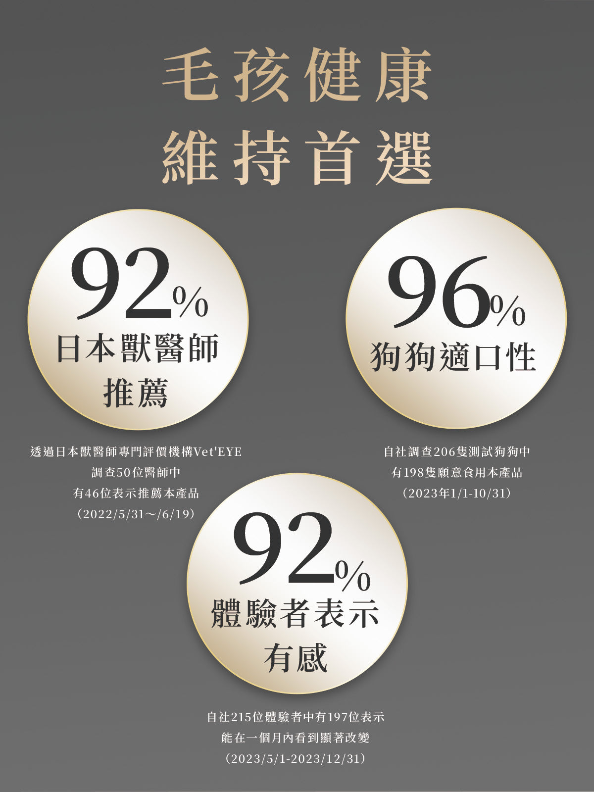 根據不同毛孩體質和狀況可能會有差異,我們統計有超過93%的使用者在30天內能看到改善。